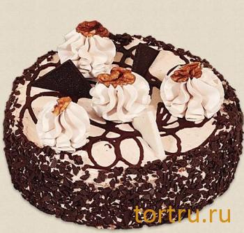Состав: бисквит, взбитые сливки, кофе, шок.глазурь, грецкий орех, шоколад сыпучий