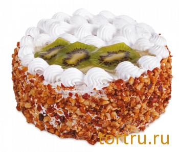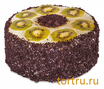 Слои бисквитного шоколадного, промоченные сахарным сиропом, и воздушно-орехового полуфабрикатов соединены кремом на растительных маслах. Поверхность покрыта и отделана кремом на растительных маслах, киви, гелем нейтральным, кондитерской глазурью. Боковая поверхность отделана кондитерской глазурью.