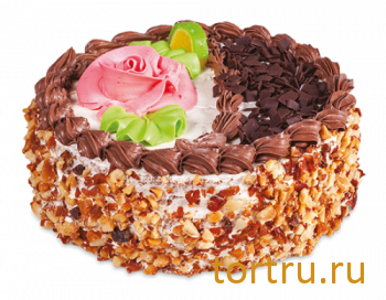 Состав: бисквит, сироп, сливочный крем, орех, шок.глазурь