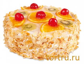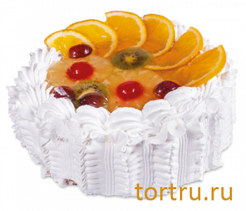 Состав: бисквит, взбитые сливки, фруктовый наполнитель, свежие фрукты, желе