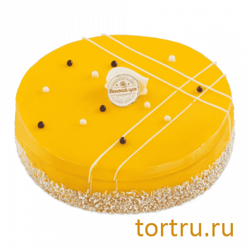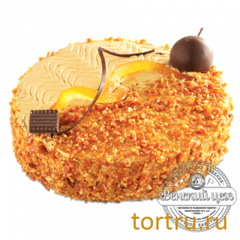 Нет информации (или она скрыта производителем) о содержании растительных маселКоржи шоколадного масляного бисквита прослоены кремом сливочным с варёной сгущёнкой и начинкой апельсиновой. Торт частично обсыпан грильяжем из арахиса, украшен "картошкой" в глазури, цукатами апельсина и шоколадными фигурками.