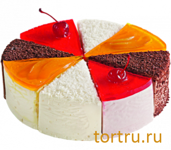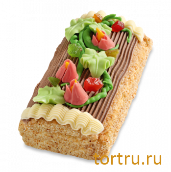Нет информации (или она скрыта производителем) о содержании растительных маселВоздушные коржи соединены сливочным кремом, смешанным с фруктово-ягодной подваркой. Торт украшен шоколадным и белым сливочным кремом.