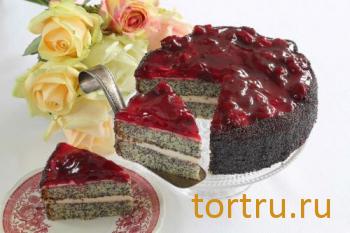 Нет растительных масел в составе продуктаДва слоя масляного с маком бисквита пропитаны вишнёвым сиропом и соединены сливочным кремом. Поверхность торта покрыта сливочным кремом и вишнёвой начинкой, украшена гелем красного цвета. Бока торта покрыты кремом и обсыпаны маком.