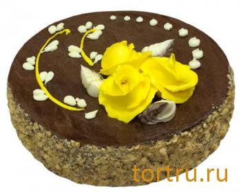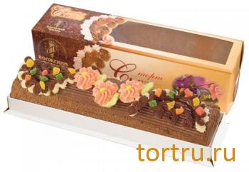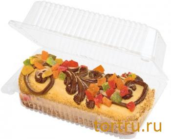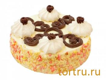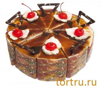 Классический бисквит пропитан сахарным сиропом с добавлением коньяка и десертного вина. Крем из взбитых сливок со вкусом «Крем-брюле»