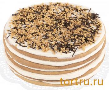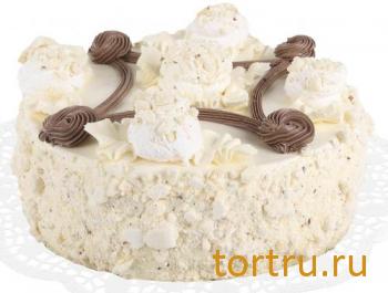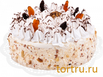 Описание: Воздушно-ореховые слои из безе и арахиса прослоены сливочным кремом. Торт украшен узором из крема.