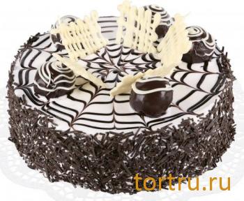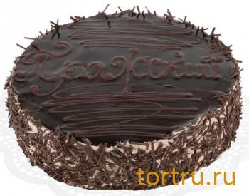Описание: Слои шоколадного бисквита соединены фирменным масляным кремом (пражский). Торт украшен сахарной помадкой и шоколадной глазурью.