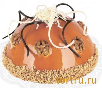 Описание: Слои нежнейшего карамельного бисквита пропитанного сиропом соединены сливками с кленовым сиропом. Торт украшен шоколадной и ванильной глазурью, шоколадным декором и грецким орехом.