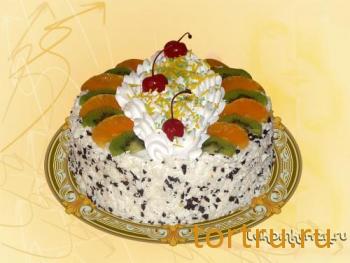 Бисквит, йогурт, цукаты, растительные сливки, желе, ананасовый конфитюр, шоколадная посыпка