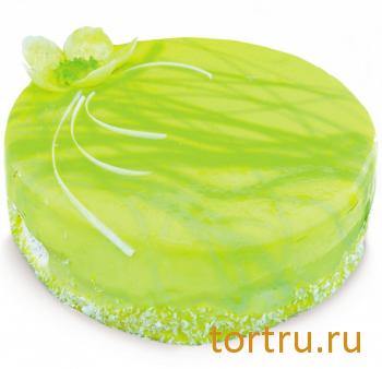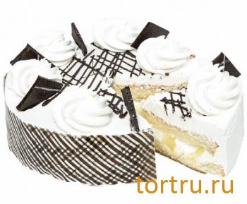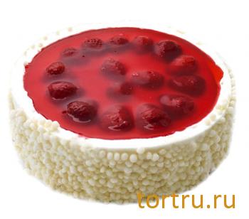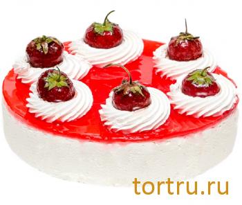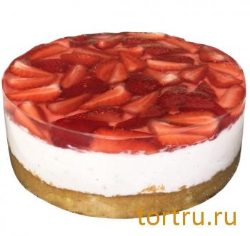 Торт состоит из тонкого бисквита с апельсиновым соком и апельсиновой цедрой, творожным муссом. Покрыт желе и украшен сливками с клубникой.
