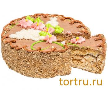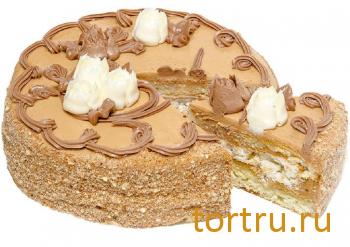 Классический торт из нежных песочных коржей, прослоенных сливочным кремом с добавлением сгущенного молока. Поверхность торта украшена хрустящими хлопьями.