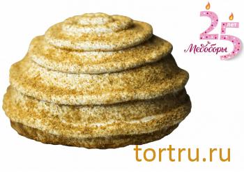Торт от бренд шеф-кондитера Медоборы Марии Маковецкой, специально к 25-летию Медоборы: медовый полуфабрикат, сметанный крем - дают нежный и неповторимый вкус, словно из детства. Торт декорирован «спиралью» из сметанного крема и крошки.