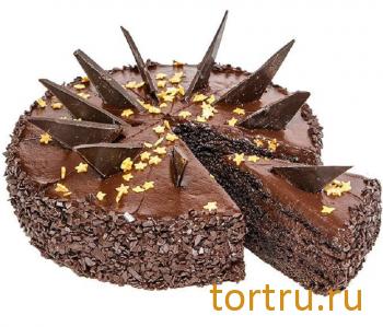 Сочетание бисквита с горьким шоколадом 70% и сыра Креметто, начинка – шоколадный мусс.
