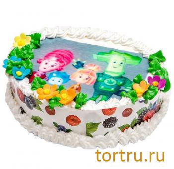 Изысканный бисквит в тандеме с нежным вкусом суфле с добавлением сгущённого молока и хрустящей крошкой безе. Поверхность торта украшена темным шоколадом и цветочной композицией из молочной мастики.
