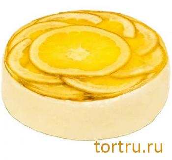 Бисквит и нежнейший мусс с добавлением апельсинового фреша. Торт декорирован дольками апельсина.