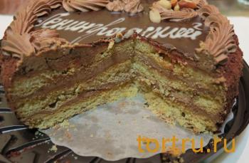 Нет растительных масел в составе продуктаСостав: Медовый шоколадный бисквит с большим количеством грецких орехов, коньячный какао-крем на основе сгущенного молока.