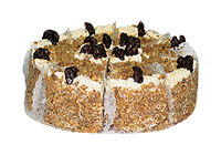 Состав: Молоко цельное сгущенное с сахаром, яйца, сахар-песок, мука пшеничная в/с, масло сливочное 82%, шоколадная глазурь (масло сливочное, вода питьевая, сахар-песок, какао-порошок), вода питьевая, какао-порошок, орехи грецкие жареные (ядра), мед натуральный, коньяк, уксусная кислота 9%, сода пищевая (натрий двууглекислый), ванилин, сорбиновая кислота
