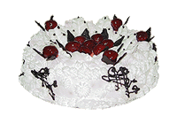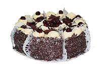 Украшение: Сливочный крем, шоколадная стружка и ягоды вишни в коньяке.