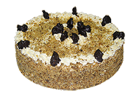 Украшение: Сливочный крем, грецкие орехи в шоколаде.