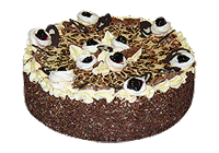 Украшение: Крем шагана, фигурный шоколад и взбитые сливки.