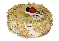 Украшение: Крем шагана, шоколадная глазурь, фрукты.