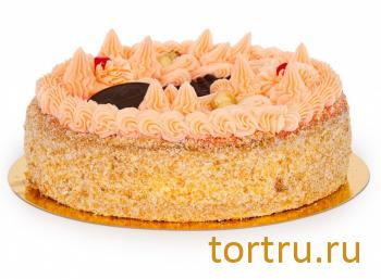 СОСТАВ: Мука в/с, сахар, яичный продукт, маргарин, ванилин, масло сливочное, молоко сгущеное, коньяк, арахис, кувертюр, джем абрикосовый, мармелад, ликер (Абрикос), разрыхлитель.