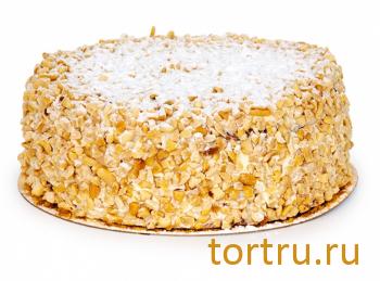 СОСТАВ: Мука в/с, сахар, молоко сгущеное вареное, меланж яичный пастеризованный, сливки, масло сливочное, мёд гречишный, грецкие орехи, фундук, разрыхлитель (сода).