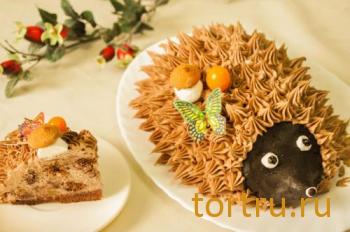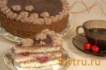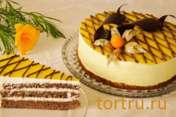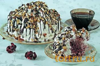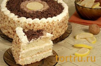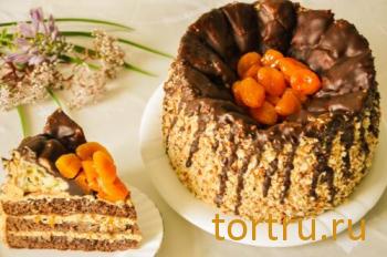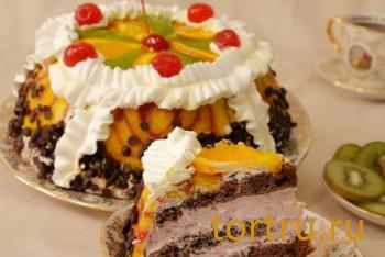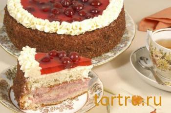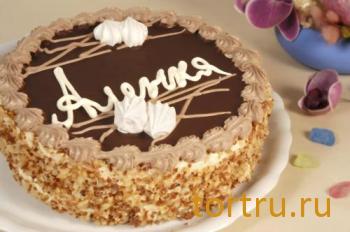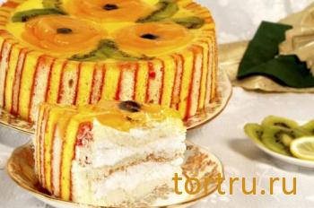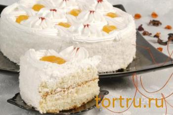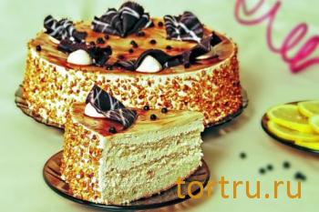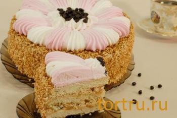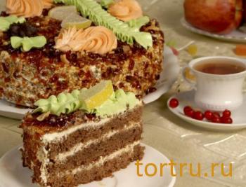 Описание: Рассыпчатые песочные коржи соединены сливочным кремом. Поверхность торта покрыта помадкой, украшена сливочным кремом, цукатами, орехами. Боковые стороны покрыты сливочным кремом и обсыпаны бисквитной крошкой.