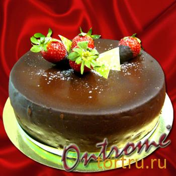 Шоколадный бисквит, пропитанный коньячно-ромовым сиропом, с прослойкой абрикосового джема и шоколадного крема.