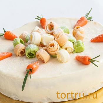 Морковный бисквит со специями, грецким орехом, изюмом и креме с белым шоколадом