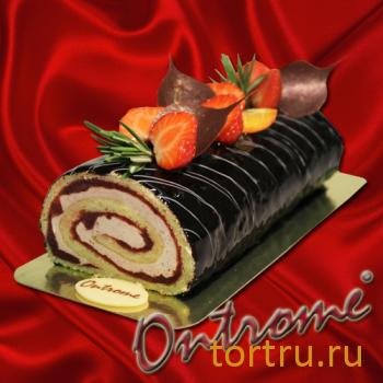 «Онтромэ Рулет» - в тонком слое бисквита "джаконд" ягодный или фруктовый мусс с прослойкой клубничного конфитюра.
