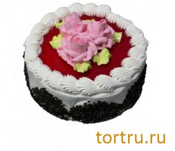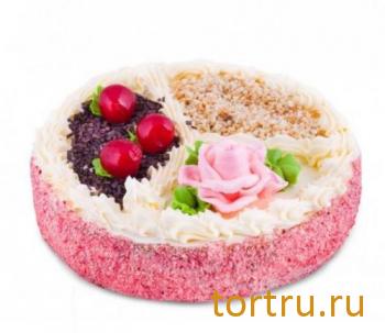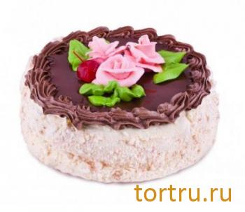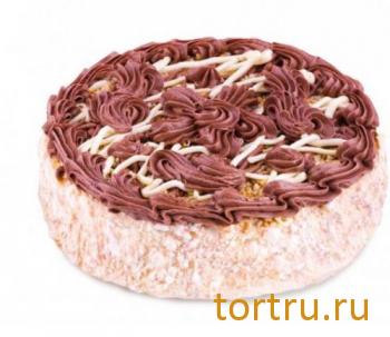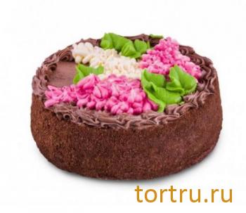 Три слоя: бисквитный, воздушный, бисквитный с какао-порошком соединены между собой шоколадным кремом с орехами. Поверхность покрыта шоколадным кремом и украшена веткой сирени из сливочного крема.