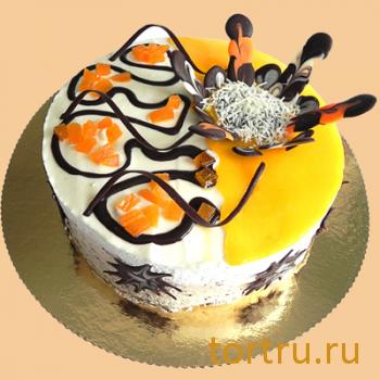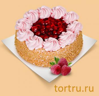 Нежнейший ванильный бисквит в сочетании с легким кремом из взбитых сливок и вишневым джемом, а также свежие фрукты (виноград, мандарин, киви, ананас) создают исключительную вкусовую гармонию.