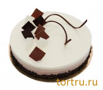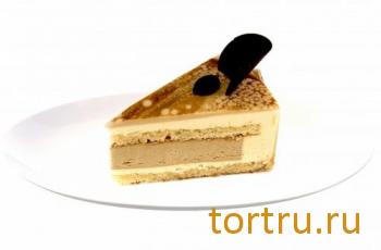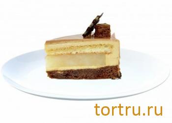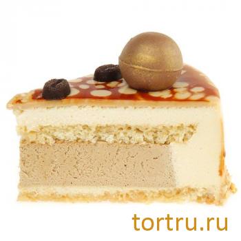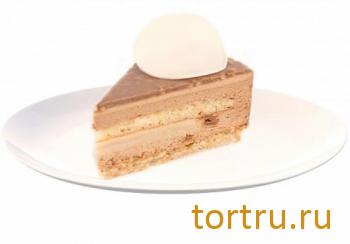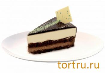 Сочетание мусса из белого шоколада и кофейного мусса с прослойкой апельсинового бисквита с добавлением ликера "Бейлис". Украшен шоколадным декором.