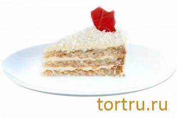 Коксовый бисквит пропитанный кокосовым сиропом с прослойками из кокосового мусса с кокосовой обсыпкой – это настоящее райское наслаждение.