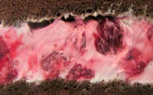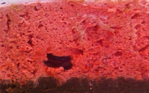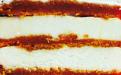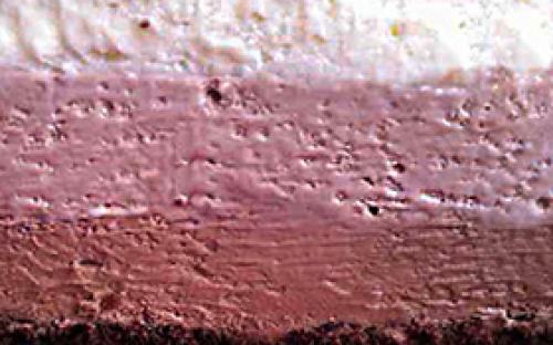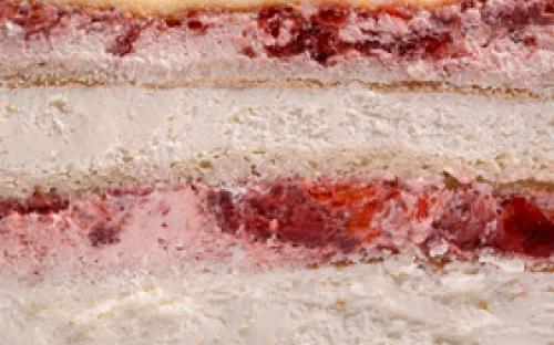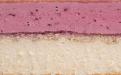 • Начинка из муссов. Сочетание слоя ягодного мусса из клубники, вишни и чёрной смородины со слоем чизкейка.