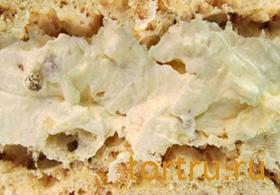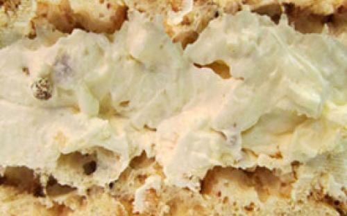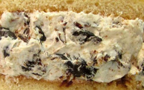 • Нежная сливочная. Нежный домашний бисквит, пропитанный сиропом с добавлением коньяка, прослоенный ванильно-сливочным кремом, с добавлением чернослива и грецкого ореха.