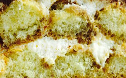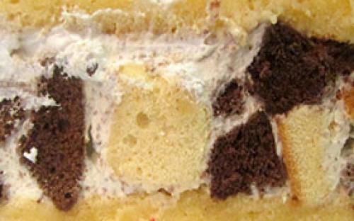 • Панчо. Сметанный крем с добавлением нежнейших кусочков ананаса с прослойками белого и шоколадного домашнего бисквита на основе сметаны.