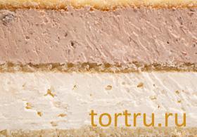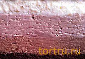 • Три шоколада. Нежный шоколадный бисквит, пропитанный сиропом, в сочетании с 3-мя видами муссов, приготовленными из натурального шоколада (горького, молочного и белого).