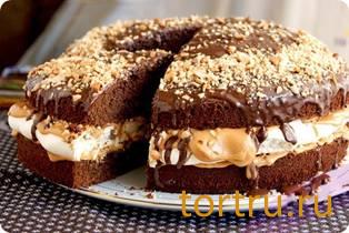Сникерс - Три слоя настоящего шоколадного бисквита, пропитаного сахарным сиропом и две прослойки крема. Карамельный с орешками (из варёнки со сливочным маслом) и крем из взбитых сливок. Нравится абсолютно всем любителям шоколада.