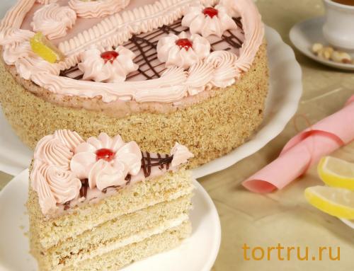 Описание: Рассыпчатые песочные коржи соединены сливочным кремом. Поверхность торта покрыта помадкой, украшена сливочным кремом, цукатами, орехами. Боковые стороны покрыты сливочным кремом и обсыпаны бисквитной крошкой.