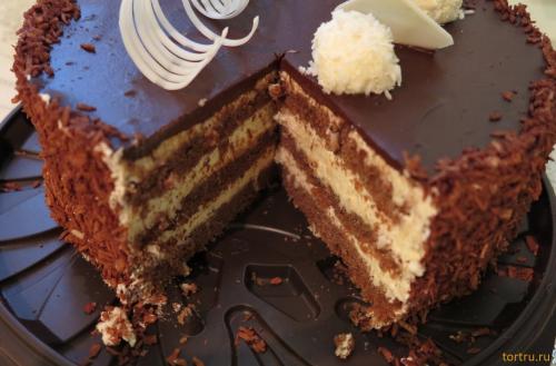 торт для любителей шоколада баунти и кокосовой стружки. Везде чувствуется вкус кокосовой стружке, торт ей и обсыпан, она есть и внутри, в сочетании шоколадного бисквита торт вкусный и оригинальный.