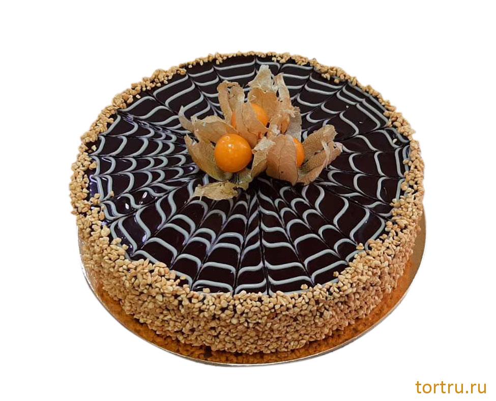 Тонкие шоколадные блинчики в сочетании с сливочно-шоколадным кремом. Украшен вафельной крошкой  и тёмным шоколадом с физалисом.