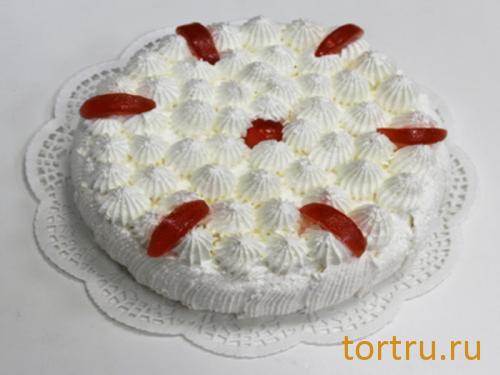 Состав: Торт состоит из двух полуфабрикатов: нежный бисквит и кремо-сбивная масса с кусочками мармелада. Поверхность торта покрыта гелем и украшена кремо-сбивной массой и мармеладными дольками.