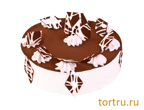 Бисквит с ореховой прослойкой, воздушным пломбирным суфле и шоколадной глазурью.