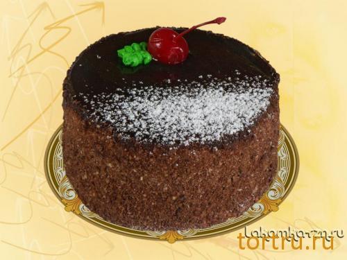 Ванильный бисквит, сливочно-вишневый крем, мягкая глазурь, вишня