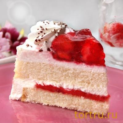 Воздушный крем с творожным вкусом, легкий бисквит и джем из клубники.