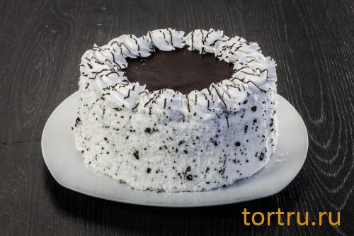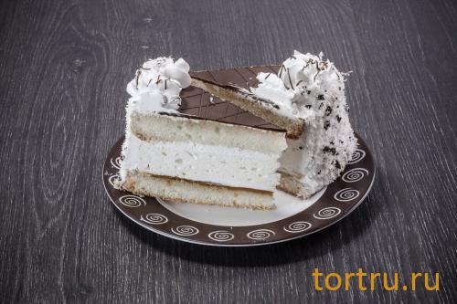 Состав: бисквит, суфле, сливки, сгущенное вареное молоко, кокосовая стружка, шоколад, сироп