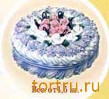 Слои бисквита пропитаны сиропом, соединены смесью крема сливочного с джемом или вареньем и орехами. Поверхность украшена цветами из белкового крема.