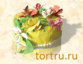 п/ф бисквитный "Буше", сливки с карамельной начинкой, сахарная мастика, крем "Сливочный", посыпка "Бусы"