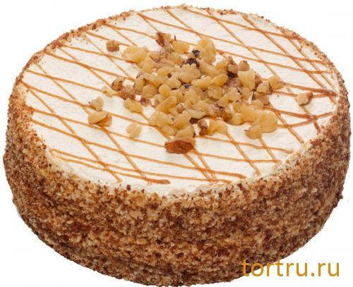 Ванильный и шоколадный бисквит, нежный крем-брюле, вареное сгущенное молоко и грецкие орешки.